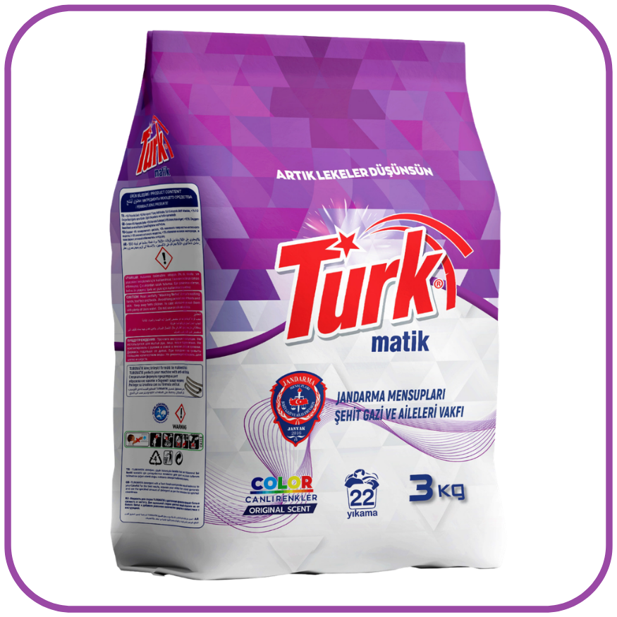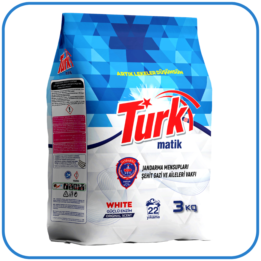 TÛRKMATİK Powder Detergent that gives an eye-catching whiteness and freshness (3kg = 22 washes)