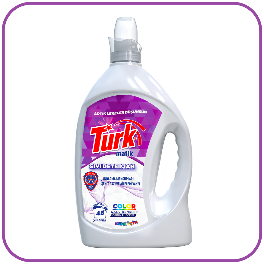 TÛRKMATİK Liquid Detergent for color offers both deep cleaning and gentle care for your laundry, so you can enjoy fresh and vibrant colored clothes with every laundry wash.